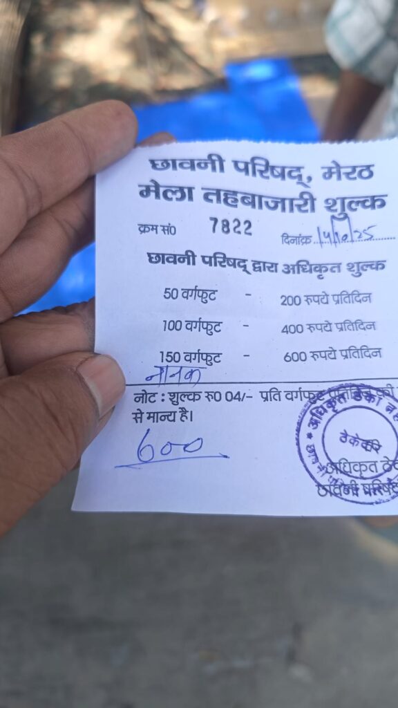 मेरठ। कैंट बोर्ड ने जो तहबाजारी का ठेका छोड़ा है उसमें साफ लिखा है कि केवल चलते फिरते हॉकरों से तहबाजारी की रसीद काटनी है। लेकिन ठेकेदारों के लोग अब कैंट इलाके में दुकानदारों से भी तहबाजारी की वसूली कर रहे हैं। यह वसूली पांच सौ , एक हजार व ढाई हजार रुपए तक की जा रही है। हैरानी तो इस बात की है कि यह ठेकेदारों के लोगों को इस वसूली में मदद करने का काम खुद कैंट बोर्ड रेवेन्यू सेक्शन का स्टाफ कर रहा है।