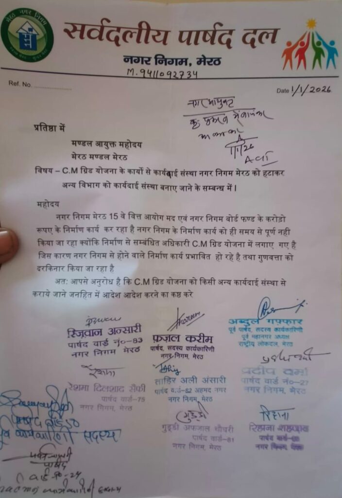 मंडलायुक्त और जिलाधिकारी से आग्रह किया गया है कि सीएम ग्रिड योजना के तहत मेरठ में कराए जा रहे कार्यों से नगर निगम के अफसरों को हटाया जाए। क्योंकि सीएम ग्रिड योजना के तहत कराए जाने वाले कामों को लेकर ठेकेदार के काम पर जिस तरह से सवाल उठ रहे हैं और निगम अफसर उस ओर तवज्जाे नहीं दे रहे हैं उससे इतना तय है कि ना तो सीएम ग्रिड योजना के तहत कराए जा रहे काम ठीक प्रकार से हो पाएंगे और ना ही नगर निगम बोर्ड के फंड तथा पंद्रहवें वित्त आयोग से कराए जा रहे कई सौ करोड़ के कार्य ठीक प्रकार हो पाएंगे। आयुक्त व जिलाधिकारी से मांग की गई कि सीएम ग्रिड योजना में कराए जाने वाले कामो की जिम्मेदारी पीडब्लूडी या अन्य किसी विभाग को दी जाए।