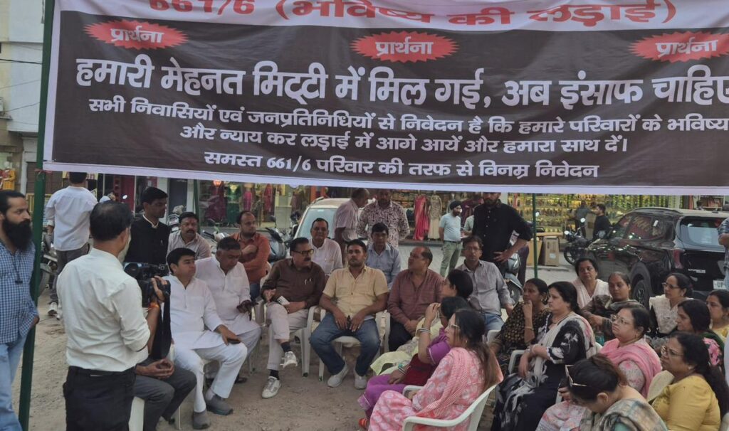 मेरठ। शास्त्री नगर सेंट्रल मार्केट के ध्वस्त कॉम्प्लेक्स के विरोध में 22 प्रभावित परिवारों ने आज से अनिश्चितकालीन धरना प्रारंभ कर दिया। धरने पर बैठे पीड़ित व्यापारियों से आज मेरठ महानगर कांग्रेस कमेटी के अध्यक्ष रंजन शर्मा, पूर्व जिला अध्यक्ष अवनीश काजला, पूर्व महानगर अध्यक्ष ज़ाहिद अंसारी, वरिष्ठ कांग्रेस नेता सलीम खान, रीना शर्मा, संजय कटारिया, सचिन शर्मा, के.डी. शर्मा, महेंद्र गुर्जर, अजय चौधरी, अमित गुप्ता तथा राजू यादव सहित कई पदाधिकारी और कार्यकर्ता मिले।कांग्रेस नेताओं ने पीड़ित व्यापारियों को पूर्ण समर्थन का आश्वासन देते हुए कहा कि कांग्रेस पार्टी हर अन्याय के खिलाफ और हर पीड़ित परिवार के साथ खड़ी है।सरकार की असंवेदनशीलता और प्रशासन की कार्रवाई की कड़ी निंदा करते हुए नेताओं ने कहा कि जब तक व्यापारियों को न्याय नहीं मिलेगा, कांग्रेस का संघर्ष जारी रहेगा।