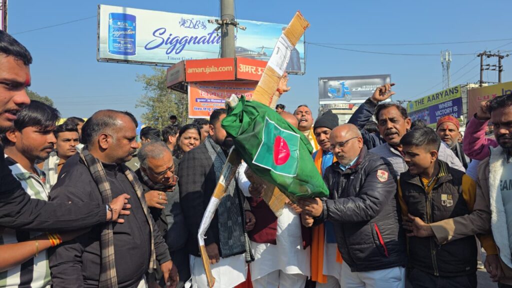 मेरठ। बंगलादेश में हिन्दुओं के साथ की जा रही हिंसा के विरोध में विहिप ने प्रदर्शन कर बेगमपुल पर बंगलादेश का पुतला दहन किया। उन्होंने जमकर नारेबाजी की। विश्व हिंदू परिषद के प्रांत मंत्री राजकुमार डूंगर ने कहा कि दीपु चंद्र दास ने यह बोला था कि ‘सभी भगवान अलग-अलग नामों से एक ही हैं। इसे ईशनिंदा करार दिया गया और इसी कारण उसे जिंदा जला दिया गया। ऐसी सोच अत्यंत खतरनाक है, क्योंकि यह भारत में धर्मनिरपेक्षता की बुनियाद को ही चुनौती देती है।